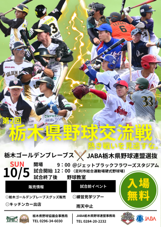 10月5日 日曜日に第2回栃木県野球交流戦が足利市のジェットブラックフラワーズスタジアムで開催されます。